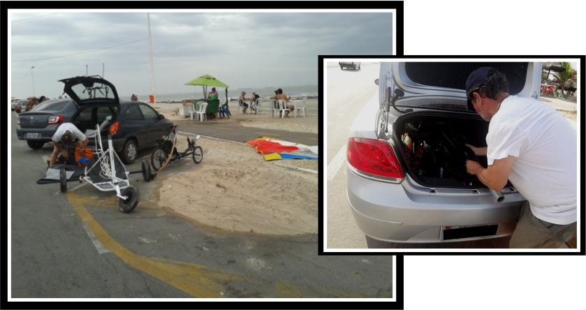 Toda WindCar cabe em uma mala que acompanha o mesmo. Também cabe confortavelmente dentro do carro, no porta malas ou no porta bagagem de teto.